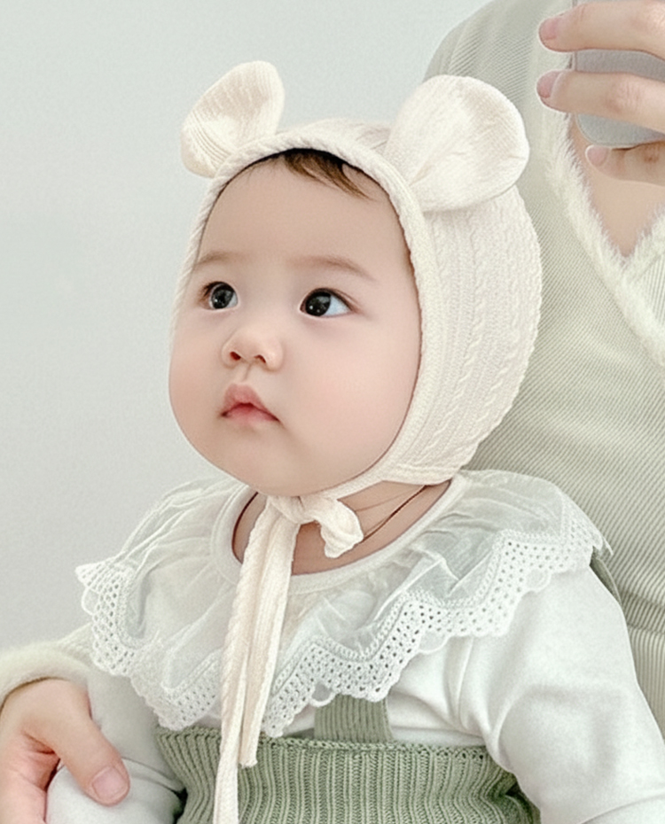 우주아이 패턴곰돌이귀 아기모자 | 무무즈